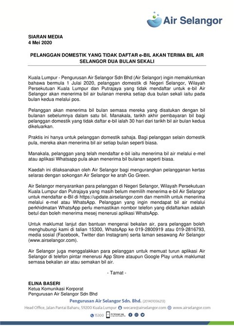 Air Selangor Bil Air 2 Bulan Sekali Baru Pos