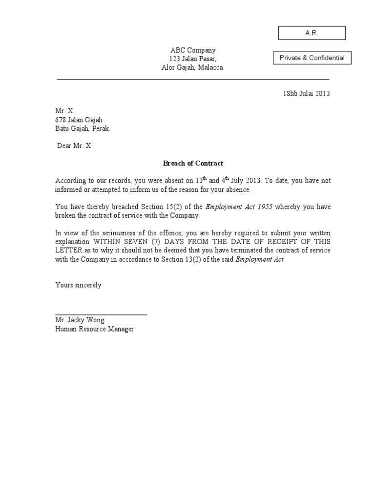06 Breach Of Contract Sample Show Cause Letter Pdf