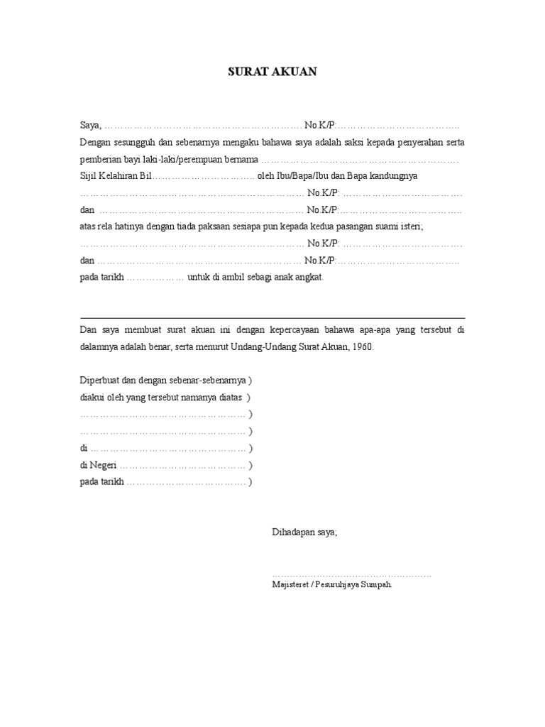 Nama dan alamat pengirim. 12 salinan pasport surat akuan bertulis dari penaja. Web Kami dari pihak orang tua kandung berjanji tidak akan melakukan tuntutan dalam bentuk apapun yang berhubungan dengan bayi kami kepada orang tua angkat yang.